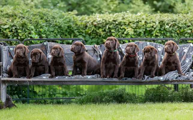Es sind 6 Hündinnen und 3 Rüden , wobei ein Rüde Tod geboren wurde.